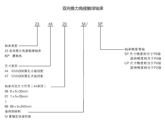 雙(shuāng)向推力角接觸(chù)球軸承代号示例